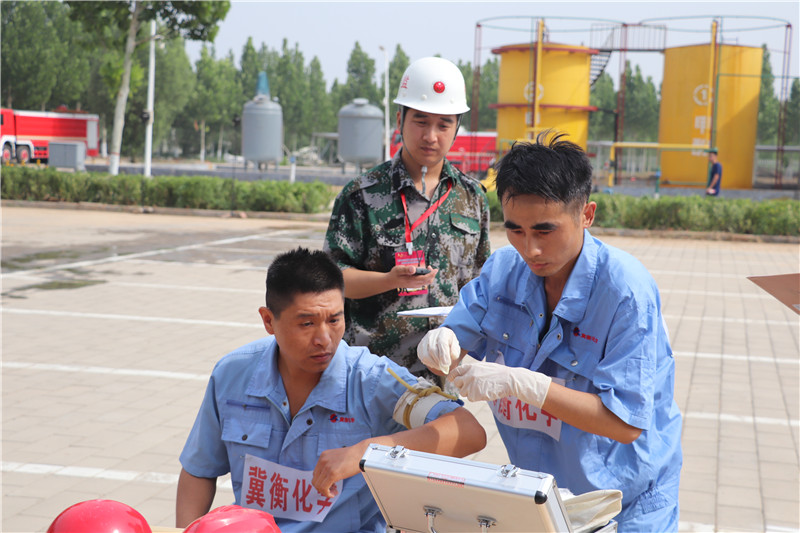 6月27日,在衡水市2019年度危險化學品生產安全事故應急救援演練暨技能比武競賽中,我公司圓滿完成了液氨泄漏事故應急救援演練,同時在全市14支代表隊參加的4個比武項目中,我公司代表隊一舉奪得3個項目的第一名,一個項目的第四名,具體為: 王向陽獲得防化服著裝空呼佩戴項目第一名,曹建強、肖保久獲得止血包扎項目第一名,李亞男獲得蘇生器使用項目第一名,田增祥獲得心肺復蘇項目第四名,在此向各位選手表示祝賀,向各位選手刻苦訓練、不畏強手、沉著比賽展現出的化學精神學習,讓我們共同為進一步加強公司應急管理,實現公司安全穩定生產做出新的貢獻!