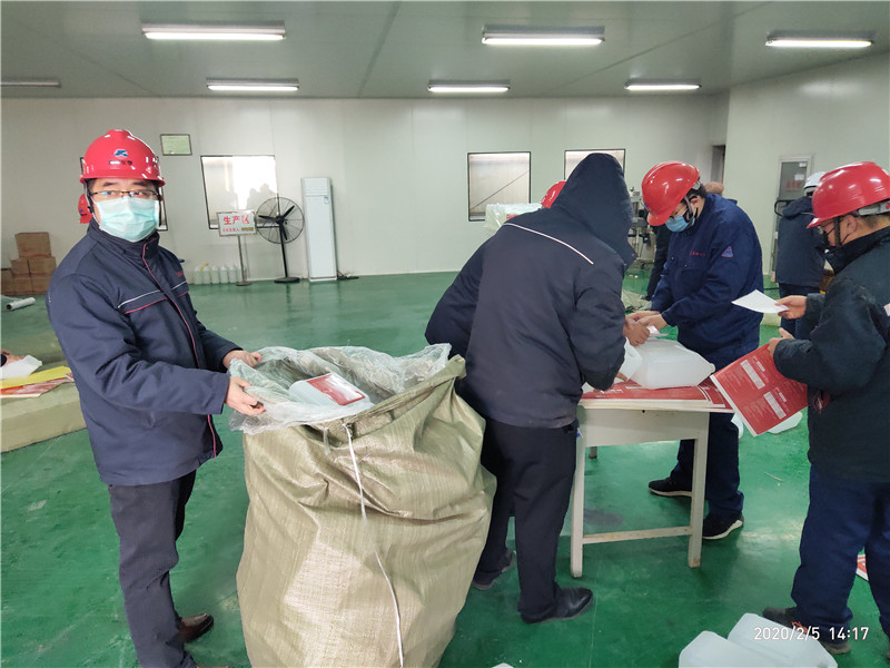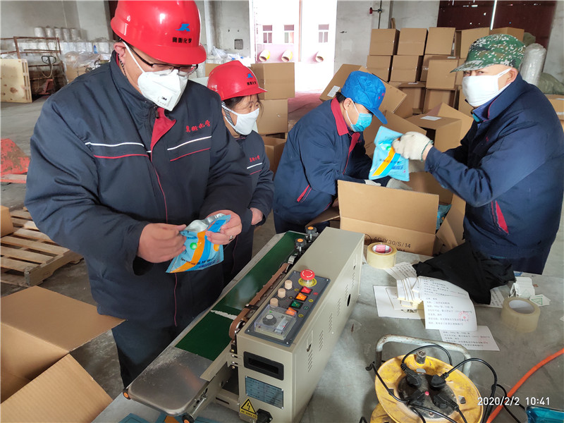 疫情爆發以來,冀衡化學公司充分發揮黨組織戰斗堡壘作用和黨員先鋒模范作用,全面部署、迅速行動、周密安排,嚴密防控,全體黨員在崗在位,黨員干部沖鋒在前,以黨建引領,堅決打贏新冠肺炎疫情防控阻擊戰,在做好公司防控工作的同時,公司全體黨員自愿組成黨員突擊隊,加班加點不計報酬,義務勞動灌裝消毒液產品,倒裝消毒顆粒產品,協助政府打好防控消毒戰!